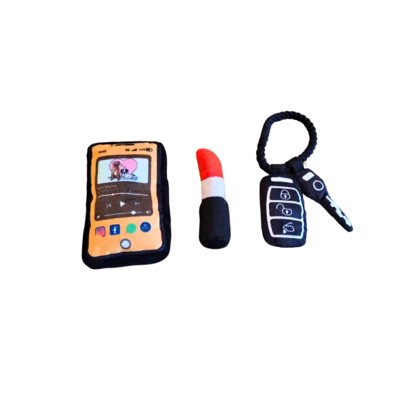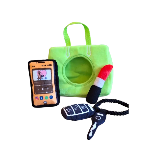Maak kennis met de “Barkin Bag” – het ultieme modieuze hondenspeeltje voor jouw stijlvolle furry chique pupper! Dit luxueuze speeltje is compleet met drie kleinere hondenspeeltjes erin verstopt: een lipstick, autosleutels en een smartphone. Met aandacht voor detail en duurzaamheid gemaakt, is de “Barkin Bag” perfect voor interactief spelen en solo snuffelsessies, en biedt eindeloos vermaak voor jouw hond. Laat jouw hond zichzelf verwennen met wat modieuze pret met dit trendy speeltje, gegarandeerd om hen het meest glamoureuze hondje in de buurt te laten voelen!